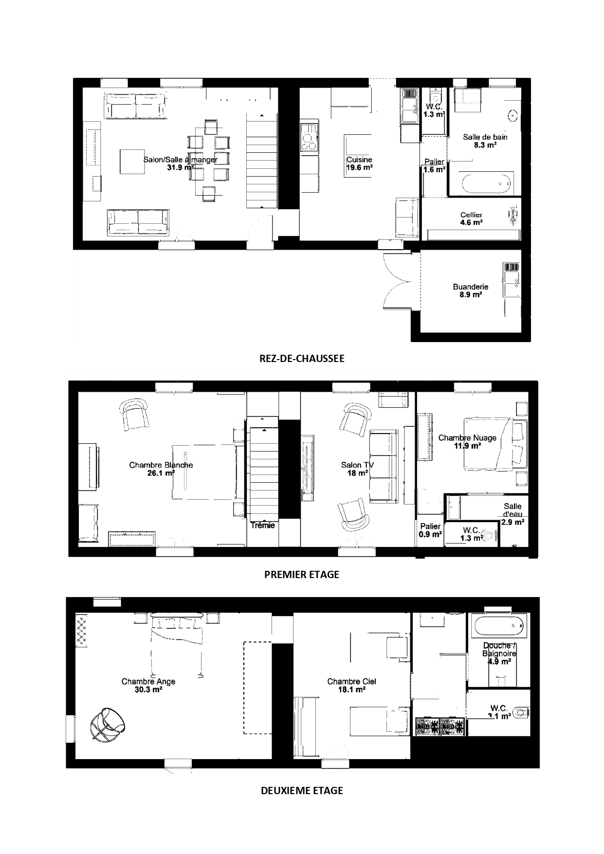 Capacité : jusqu'à 18 personnes Superficie : 65 m² + 90 m² + 120 m²